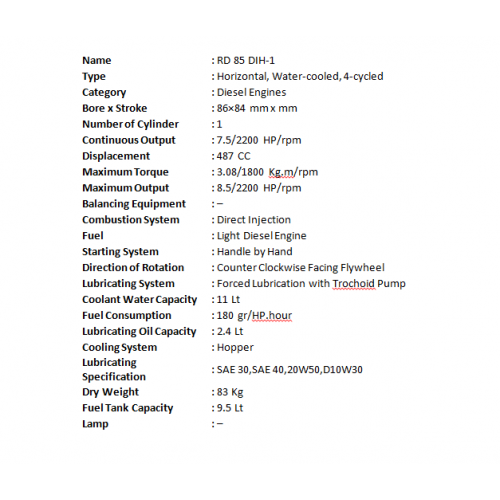 SPESIFIKASI ENGINE KUBOTA