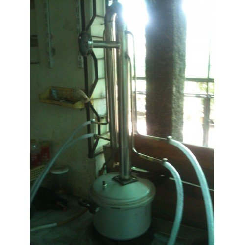 Destilator Basah Pembuatan Etanol dan Sari Buah DB 16 L kapasitas per batch 16 liter per batch 60 menit.  Dapat digunakan terus sepanjang hari hingga mendestilasi 10- 20 kali @ 16 liter/ batch atau setara kapasitas destilasi ~ 100 liter/ hari bisa didapatkan  aneka hasil ektrasi.