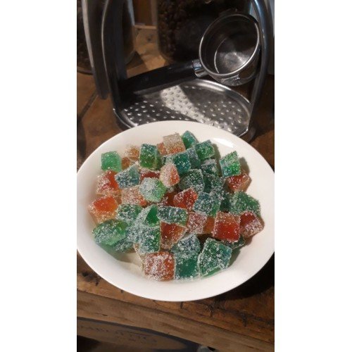 Manisan enak ini terbuat dari Lidah Buaya varietas Aloe Vera Chinensis yang khusus dibudidayakan bagi bahan pangan. Manfaat lidah buaya sudah dikenal sejak dulu. Bagian penting yang digunakan pada lidah buaya adalah bagian isinya. Dikemas dalam mika tabung 300gr