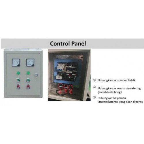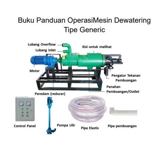Spesifikasi Mesin Pemisah Air Dewatering Separator DS 5000 L Berdimensi PLT ( P = 197 cm . L = 47 cm. T = 130 cm) terdiri dari pompa lumpur ( sludge Pumps) Head 7-8 m, daya 3 HP, 3 Fasa 380V serta Screw penekan dengan daya elektromotor 5 HP, 50Hz, 3 fasa 380V, Kapasitas 5 m3/jam, kecepatan putaran pompa 1450 rpm dan panel listrik 3 Fasa, dimensi PLT Pompa lumpur p = 37 cm. L = 29 cm. T = 173 cm dan Panel Listrik 3 Phasa. Mesin Pemisah Air Dewatering Separator DS 5000 L sangat membantu mengatasi masalah yang ditimbulkan sampah dan limbah di Indonesia. Misal Hasil pencacahan sampah organik di pasar2, dengan mesin penghancur MPO 850, dipisah air dan materi padat, dengan itu jenis cair dapat dimobilisasi melalui pipa dengan elevasi tertentu ( aliran gravitasi) kedalam digester biogas dan, ampasnya adalah materi serat (fiber) dikemas dalam karung2 sebagai bahan kompos. |