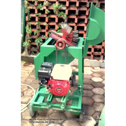 Proses penguraian atau pelapukan bahan organik dalam pembuatan kompos dipengaruhi oleh faktor-faktor antara lain oleh rasio C/N, ukuran partikel, masukan oksigen (aerasi), porositas dan kelembaban. Salah satu tahapan menyiapkan pengomposan dari bahan limbah dan sampah organik lainnya dalah pengecilan ukuran. Pengecilan ukuran limbah pertanian, limbah domestik rumah tangga, pasar sayur, limbah pasar induk, dan sampah umumnya dilakukan dengan merajang atau mencacah menggunakan mesin pencacah MPO 500 HD [Honda 5,5 PK]. Mesin pencacah ini berguna untuk memudahkan proses pencacahan sampah organik menjadi ukuran 10 sd 15 mm agar memperluas permukaan dan meningkatkan porositas bagi percepatan pembuatan kompos. Sampah organik (material sisa berasal dari makhluk hidup meliputi manusia, hewan danm tumbuhan) akan lebih cepat terurai jika berukuran kecil (10- 15 mm) sehingga lebih mudah dalam penanganan. Mesin Pencacah Organik MPO 500 HD [Honda] memiliki Spesifikasi :