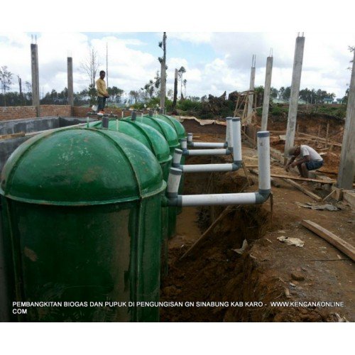 Instalasi Biogas shelter BD 3-5000 L terdiri dari 3 unit digester 5000 liter, 1 mesin pencacah sampa..
