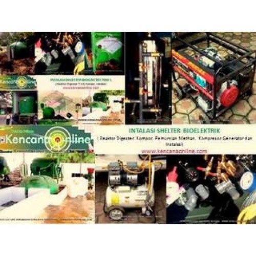 Spesifikasi Instalasi Biogas shelter BD 3-9000L terdiri dari 3 unit digester 9000 liter, 1 mesin pencacah MPO 850 HD (Elektrik 3 HP), 1 unit pemurnian biogas MP 24150 (stainless steel), gas holder kapasitas > 10 m3, 1 unit generator BG 5000 ( genset Mix Fuel biogas diesel daya 5000 watt), 3 instalasi damper lengkap kompresor pengisian tabung dan 3 lusin Kompor tabung BizGas serta bakteri aktivator metan GP-7 untuk 1 bulan serta perlengkapan instalasi ( slang, pipa PVC, valve, kompresor oilles 1/4 hp, water trap, manometer, dan perlengkapan lainnya guna menjamin berfungsinya 1 unit kompor 2 tungku dan generator). Instalasi shelter BD 3-9000L berkemampuan mengolah limbah biomassa atau sampah organik untuk pertama kalinya 27 m3 (setara berat 9 ton) dan hari selanjutnya 4,2 m3 atau 675 kg/ hari. Berbagai jenis limbah atau biomassa yang baik bagi pembangkitan energi meliputi sampah domestik dapur (jenis organik), feces kotoran hewan ternak, tinja/ septic tank, gulma kebun dan gulma air seperti eceng gondok dan kiambang, limbah proses produksi juice dan aneka makanan, serta aneka limbah tumbuhan dan ternak lainnya. Setiap harinya, output shelter Instalasi BD 3-9000 L menghasilkan biogas dengan kemurnian > 80 % metan (CH4) sebanyak 27 m3 yang memiliki daya nyala dan kalori tinggi sebagai bahan kompor guna masak memasak setara 16.72 kg LPG. Untuk kepentingan perluasan penggunaan biogas, dengan kompresor membran dialirkan dengan instalasi damper ke pengguna sampai jarak ratusan meter maupun disimpan kedalam kompor tabung bertekanan BizGas 20101. Agar biogas sebagai energi baru terbarukan dapat dimanfaatkan oleh masyarakat lebih luas lagi, biogas setelah dimurnikan atau disebut biomethan tersebut dikemas dalam tabung bertekanan sehingga lebih ringkas, dapat dijual di pengecer serta dibawa ke rumah2 masyarakat seperti halnya LPG. Dan, instalasi Shelter ini dapat difungsikan menjadi Stasiun Pengisian Bahan Bakar Biogas (SPBBG). |