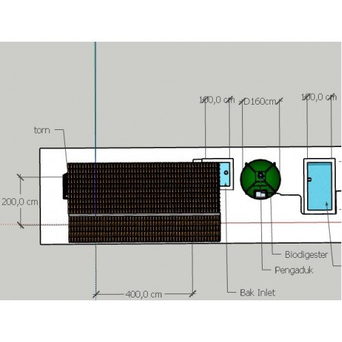 - Talang Pembilas Limbah Kandang: Talang dengan panjang 15 meter untuk membersihkan limbah ayam sebelum masuk ke digester biogas.