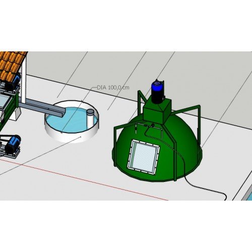 - Hopper Pakan: Tempat penyimpanan pakan yang terbuat dari stainless steel berkapasitas 25 kg dengan auger baja di dalamnya untuk mengantarkan pakan ke pan feeder. Sistem ini digerakkan oleh dua elektromotor 500 Watt dan terhubung ke panel otomatisasi untuk mengatur waktu dan jumlah pemberian pakan.