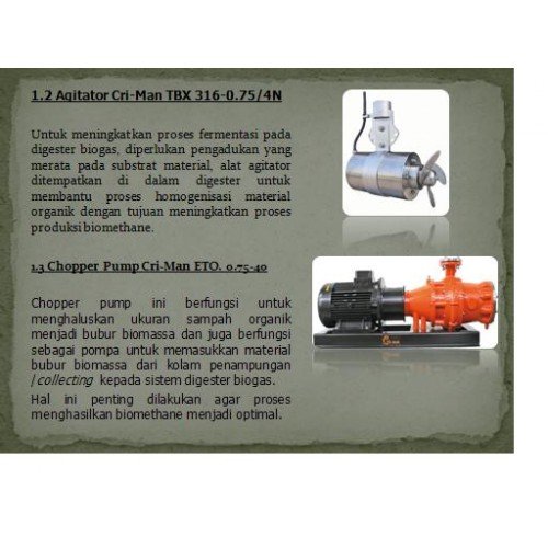 Chopper pump ini, disamping berfungsi untuk menghaluskan ukuran sampah organik menjadi bubur biomass..