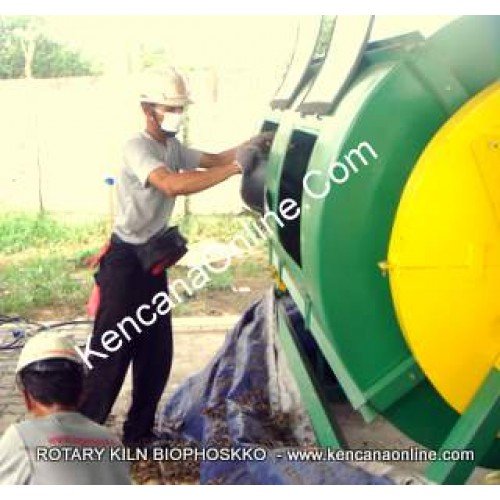 Mesin Kompos Biophosko® (Rotary Klin Elektrik RKE-1000 L) memiliki dimensi (tinggi= 180 cm, lebar= 165 cm dan panjang= 230 cm), berat keseluruhan 850 kg. Media pengolah sampah fiberglass bahan resin PL 07 LPE, jenis mat Wr 400 (mat anyam) dan mat Jushi -Kwe 300 (acak) 300 x 104, catalyst Butanox, mirror glase, pigmen HCA Dolphin Green serta aerosil HDK ini memiliki ketebalan dinding 3- 5 mm. Rangka mesin terbuat dari logam UNP, motor listrik 3 HP (3 Phase 220V/380V) 3000 watt, reducer ( Gear Box Rasio 1: 30, T 70), dilengkapi peralatan aerasi (exhaust fan) lainnya. Alat mesin ini merupakan jalan keluar bagi penanganan sampah dan limbah suatu kawasan -yang sebagian besar mengeluarkan sampah organik (rumah tangga, restoran, hotel), serta sampah yang dihasilkan kawasan komersial (pabrik, pasar, mall, apartemen, condominium, pabrik, perkebunan, usaha jamur, penggilingan padi, penggergajian (saw mill) dan sebagainya. Rotary Kiln Biophoskko® ini dirancang khusus bagi keperluan menyediakan alat media bagi pengaturan jumlah masukan oksigen ( aerasi) dan menjaga kelembaban, PH dan temperatur ( suhu) tertentu agar aneka bakteri populasi tinggi ( 10 pangkat 8) - dalam aktivator Green Phoskko ( GP-1) - dapat bekerja efektif dan efisien mengurai material organik. Sebagaimana diketahui, setiap jenis bakteri memiliki karakter berbeda dan juga kebutuhan khusus untuk mampu mendekomposisi material agar cepat, berkualitas dan higienis. Dengan demikian, bagi berjalannya pengomposan sesuai dengan standar teknologi Phoskko ( penguraian cepat, higienis, menghasilkan kompos berkualitas, bebas penyimpangan dari timbulan ulat dan bau) , maka penggunaan paket lengkap alat dan aktivator Green Phoskko ( GP-1) serta penggembur ( organic atau bulking agent) Green Phoskko ( GP-2) sangat direkomendasikan* ) |