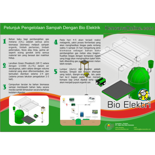 Penimbul sampah organik (tinja/feces, sisa masakan, sisa makanan/food waste, kotoran ternak sapi maupun ayam) pada rataan 5 ton/ hari akan menghasilkan 200 m3 biogas/ hari akan sesuai bagi genset bioags BG 60.000 W ini.
